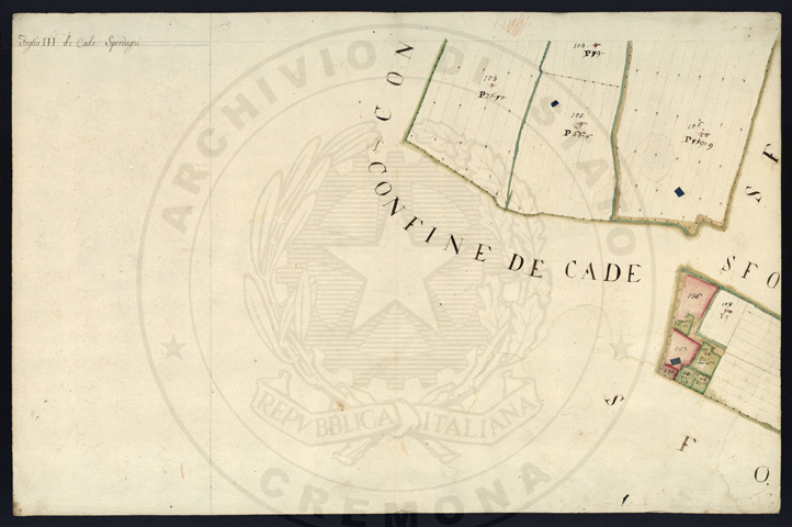 Mandamento: CremonaComune: Ca' de' SprezagniSegnatura: 008Fogli: 5Anno: 1723Scala: Trabucchi 120 milanesiMisuratore: Giovanni Paolo GollinelliAssistenti: Battista Guindani, Francesco Maria Gentile, Daniel Polli, Carlo PortiDisegnatore: Gaspare Pozzi, Giovanni Chiesa