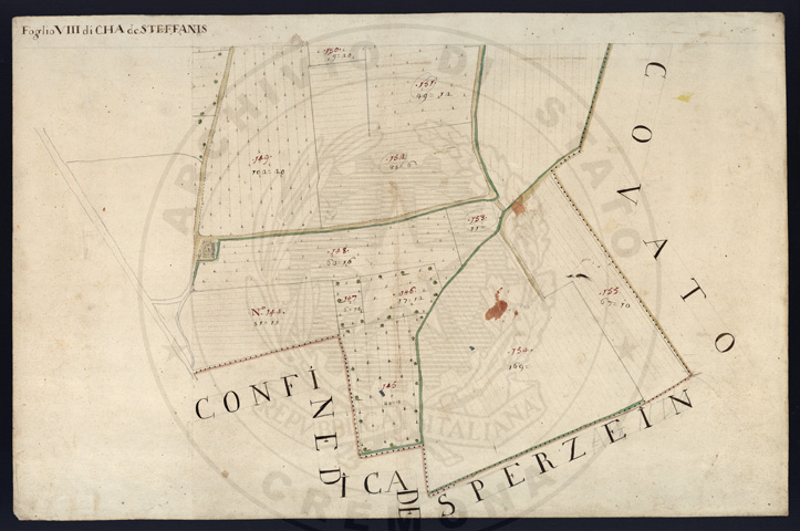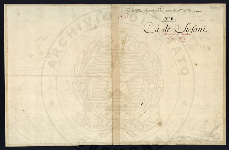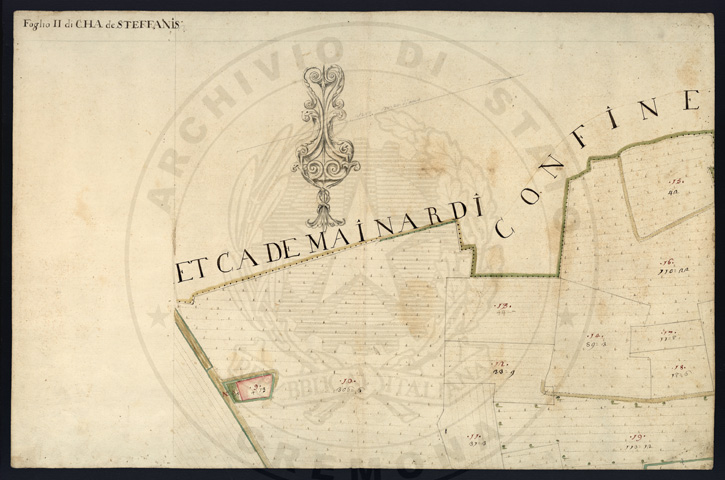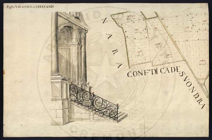 Mandamento: CremonaComune: Ca' de' StefaniSegnatura: 007Fogli: 8Sviluppo C.U.: 1Mappetta: 1Anno: 1723Scala: Trabucchi 130 milanesiMisuratore: Giovanni Samuel MayerAssistenti: Gaspar'Antonio Biasi, Antonio Banzino, Giuseppe Mariotti, Carlo ModinoDisegnatore: Antonio Porro, Antonio Cattella