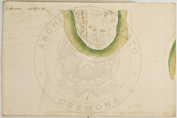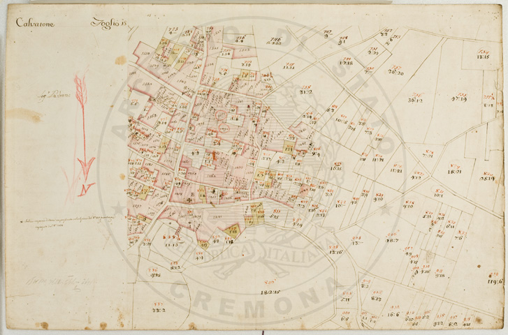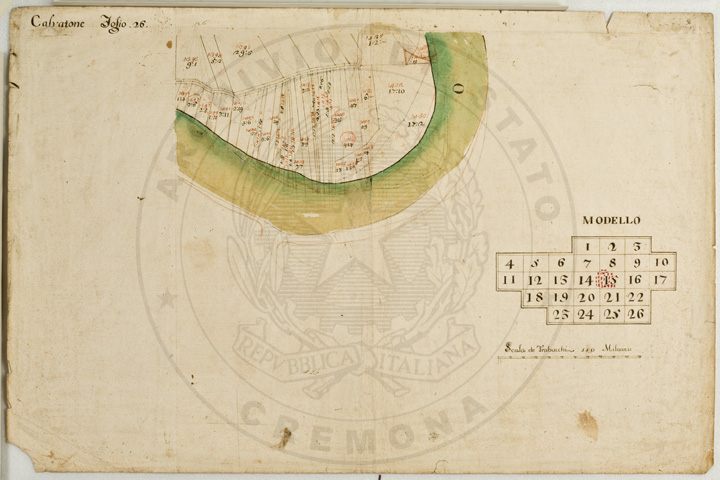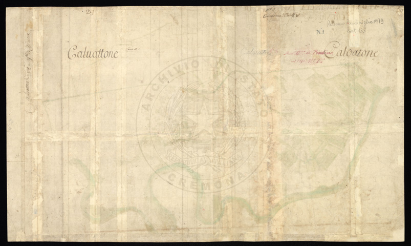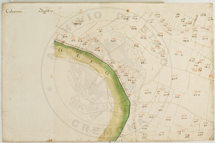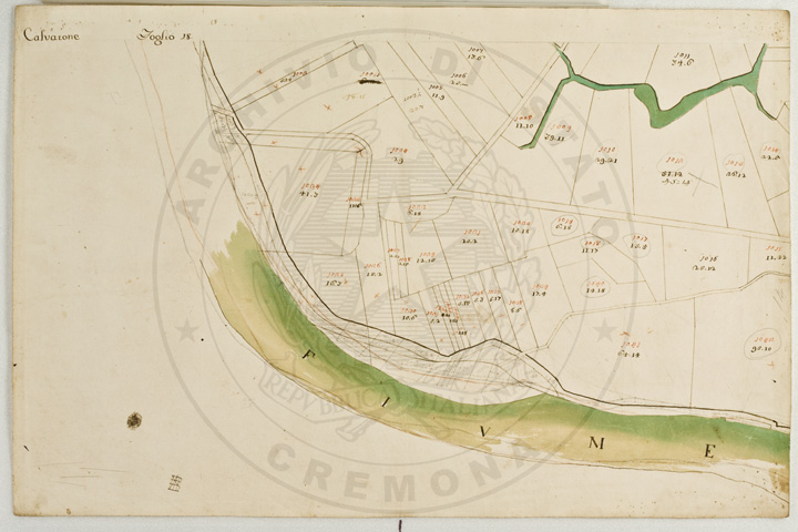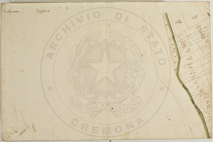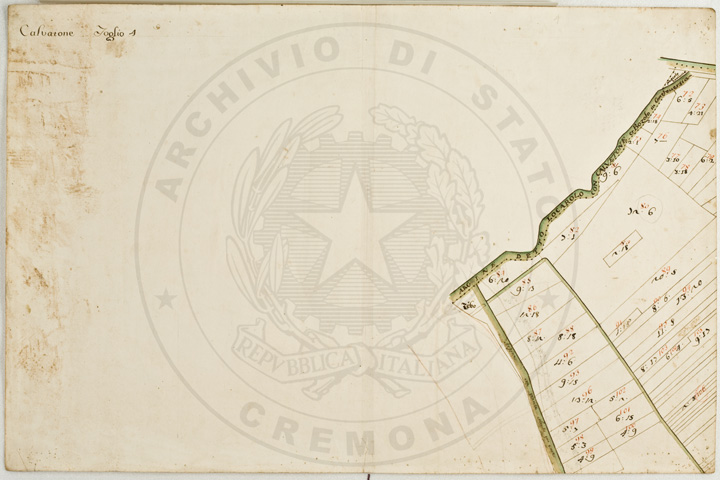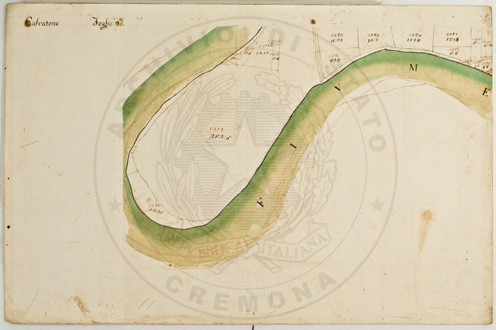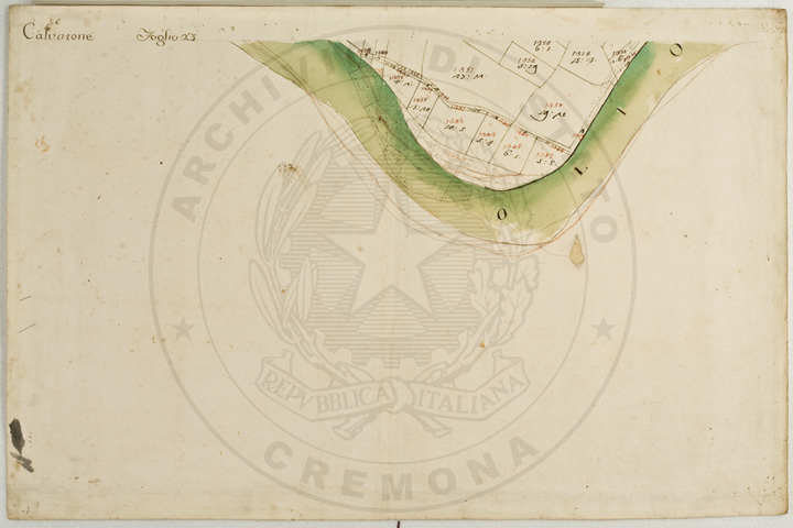 Mandamento: CasalmaggioreComune: CalvatoneSegnatura: 133Fogli: 26Mappetta: 1*Anno: 1723Scala: Trabucchi 110 milanesiMisuratore: Gabriele RosinaDisegnatore: Marco Croppi, Domenico Peloni, Ricaldi