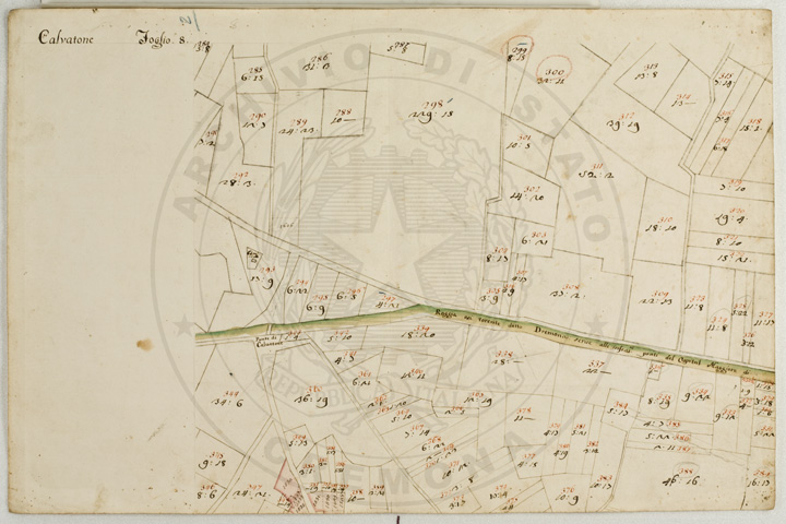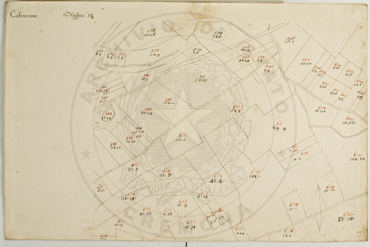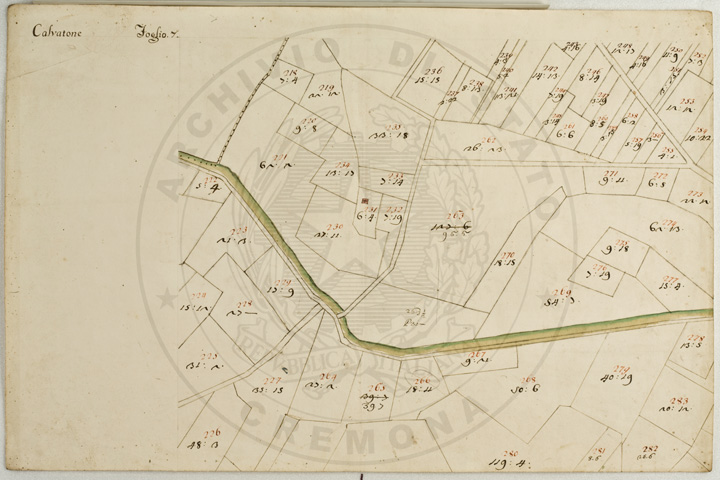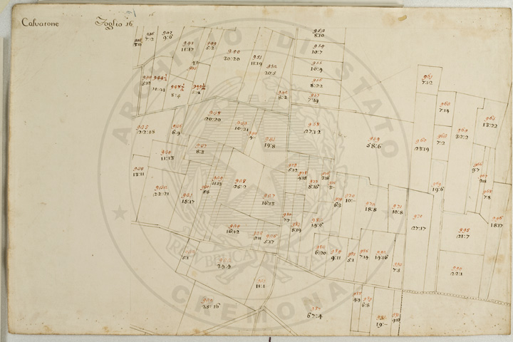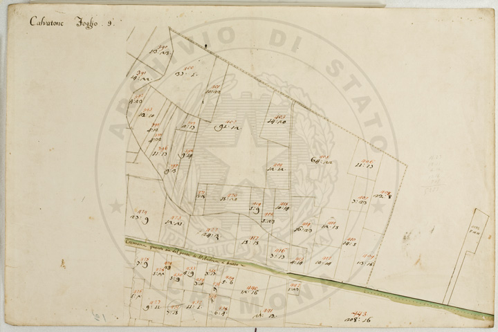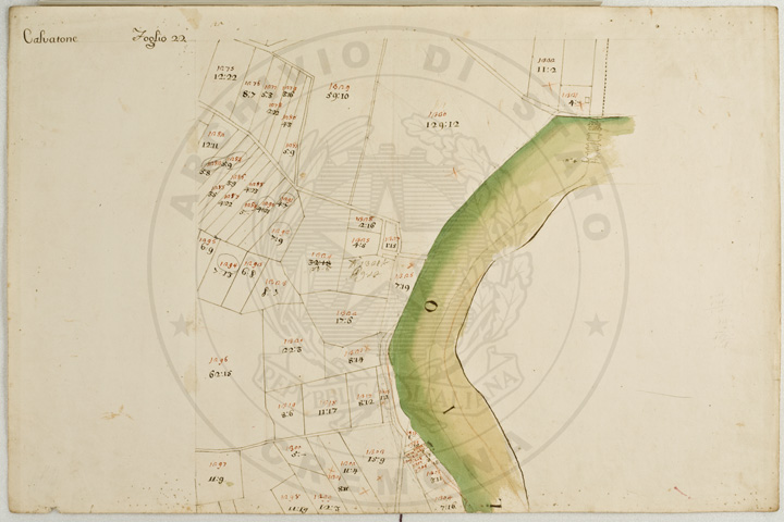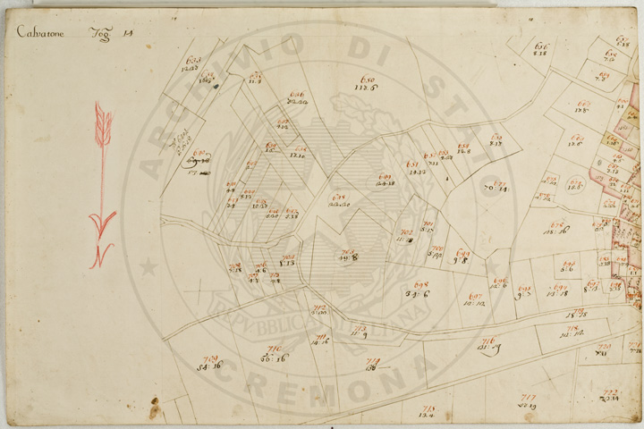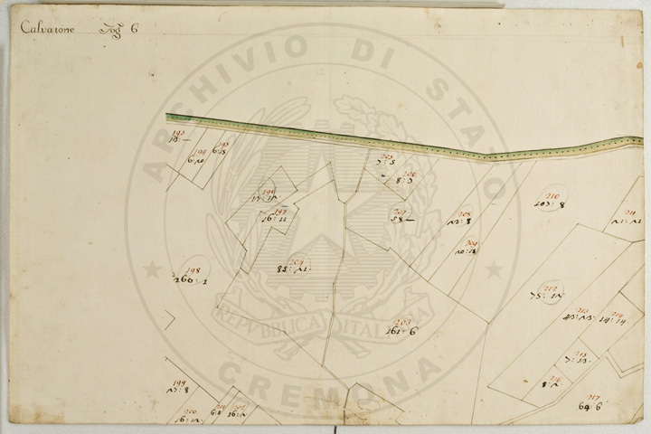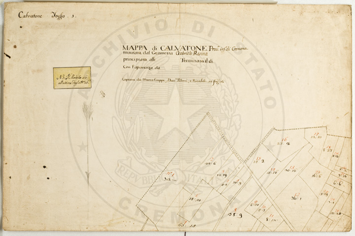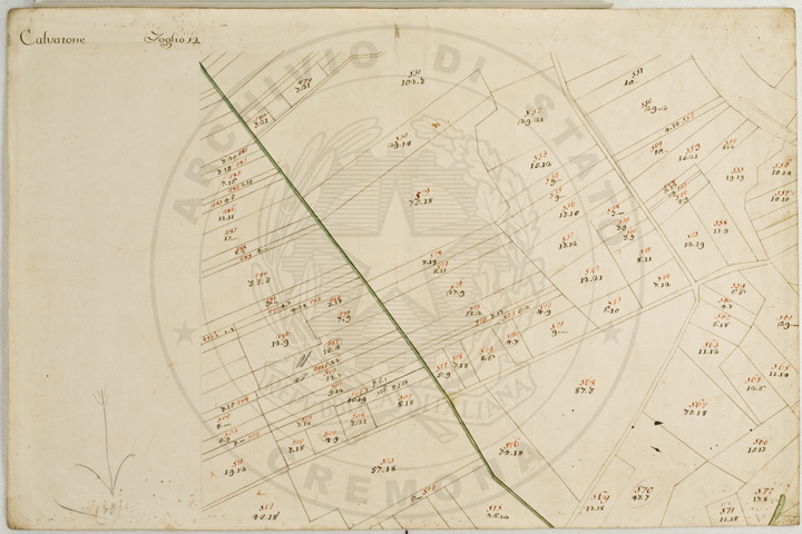 Mandamento: CasalmaggioreComune: CalvatoneSegnatura: 133Fogli: 26Mappetta: 1*Anno: 1723Scala: Trabucchi 110 milanesiMisuratore: Gabriele RosinaDisegnatore: Marco Croppi, Domenico Peloni, Ricaldi