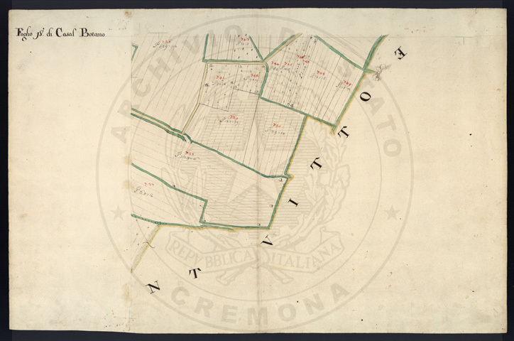 Mandamento: SoresinaComune: CasalbuttanoSegnatura: 285Fogli: 22Sviluppo C.U.: 1*Mappetta: 1*Scala: Trabucchi 130 milanesi