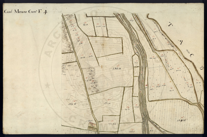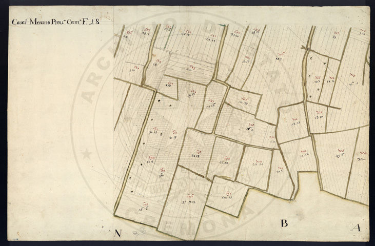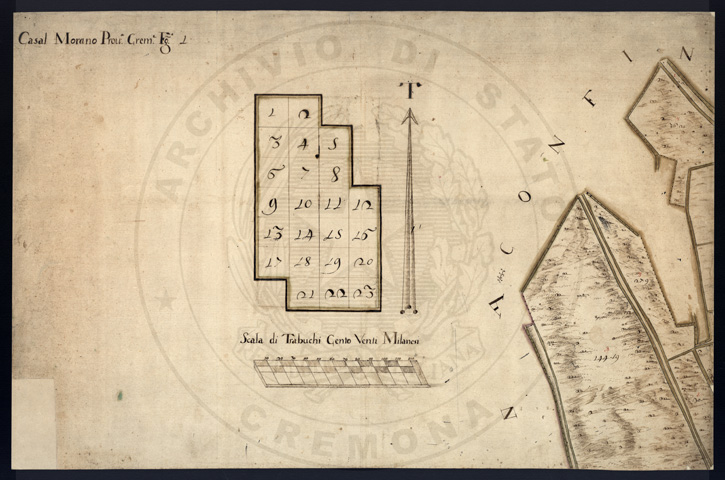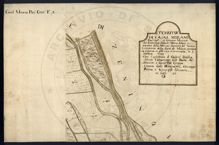 Mandamento: SoresinaComune: CasalmoranoSegnatura: 288Fogli: 23Sviluppo C.U.: 1Mappetta: 1Anno: 1723Scala: Trabucchi 120 milanesiMisuratore: Stefano Maria SillaniAssistenti: Gabriel Brocha, Silvio Valcarengo, Giobatta Aldovino, Giuseppe CrippaDisegnatore: Giuseppe Reina, Giuseppe Olivares
