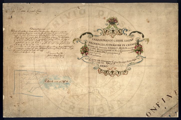 Mandamento: SoresinaComune: CastelleoneSegnatura: 290Fogli: 64Sviluppo C.U.: 5+1*Mappetta: 1*Scala: Trabucchi 150 milanesiMisuratore: Enrico AbeckDisegnatore: Carlo e Giuseppe Sirtori (padre e figlio)