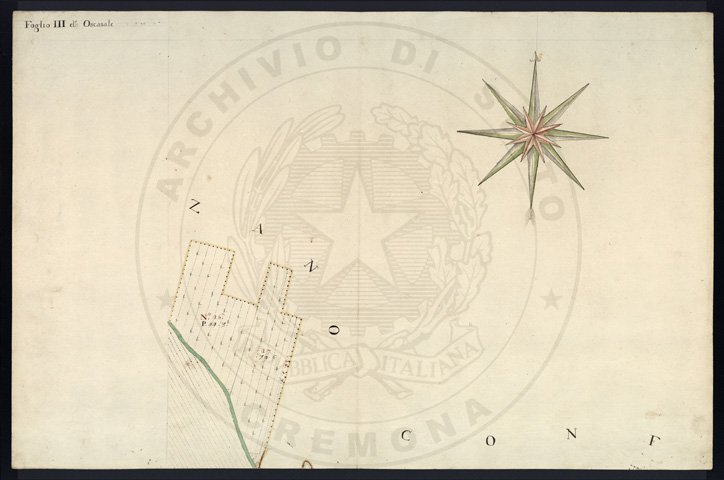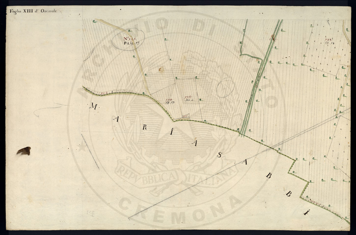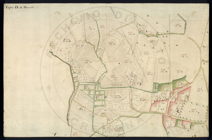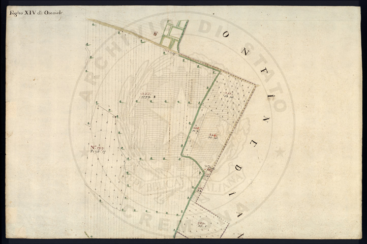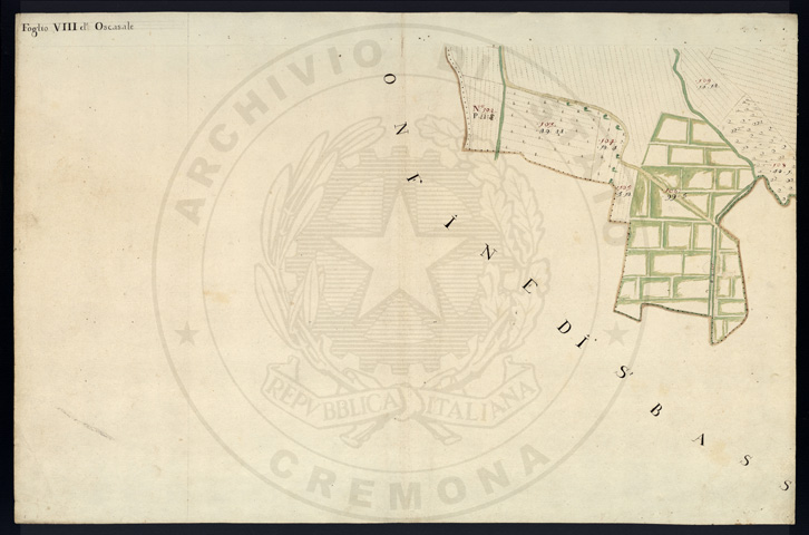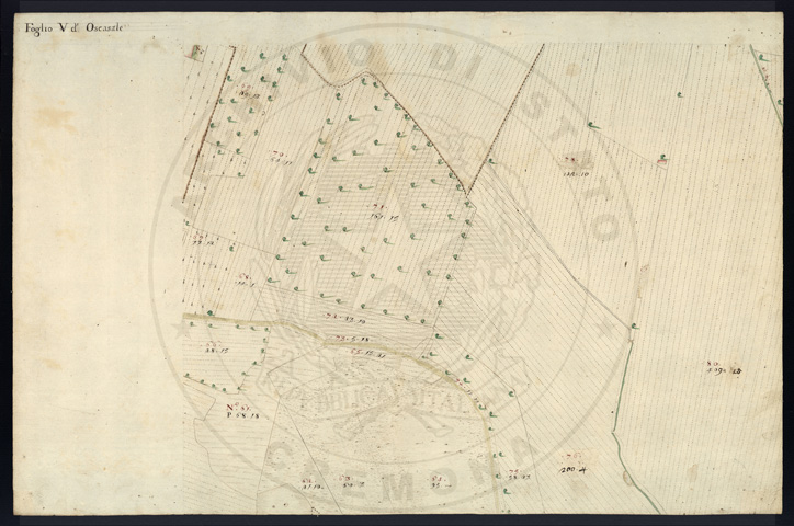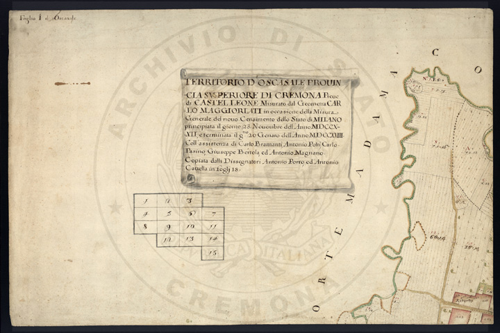 Mandamento: SoresinaComune: OscasaleSegnatura: 284Fogli: 15Sviluppo C.U.: 1Mappetta: 2Anno: 1723Scala: Trabucchi 110 milanesiMisuratore: Carlo MaggiorlatiAssistenti: Carlo Bramanti, Antonio Polti, Carlo Pasino, Giuseppe Bertola, Antonio MagnanoDisegnatore: Antonio Porro, Antonio Cattella