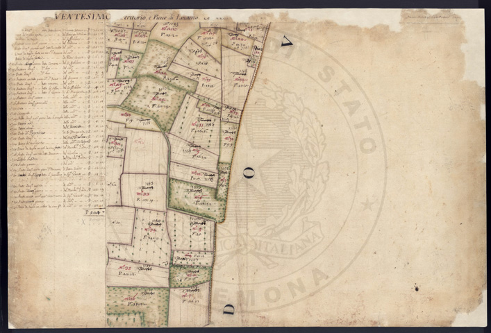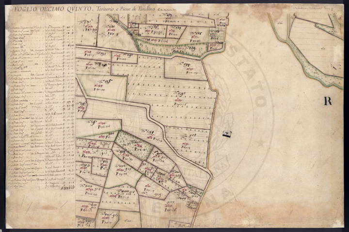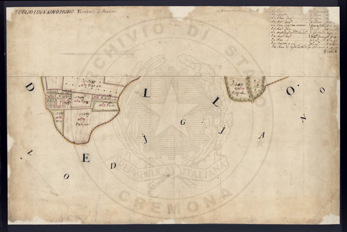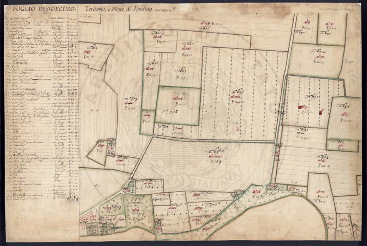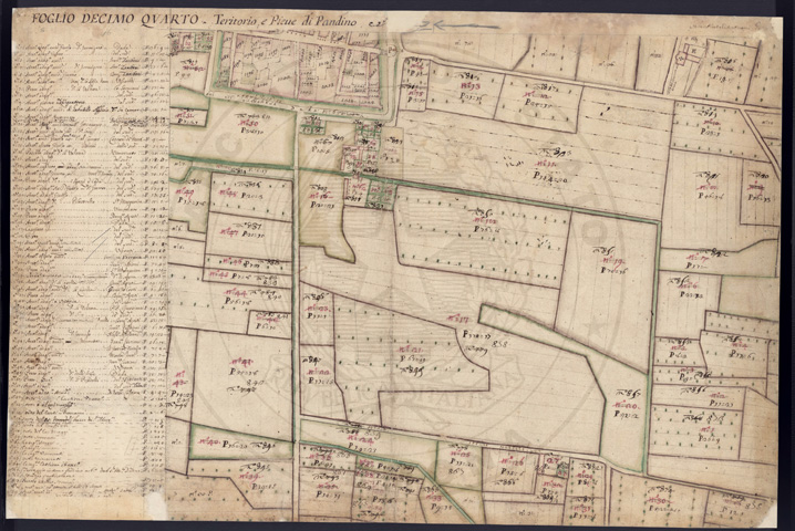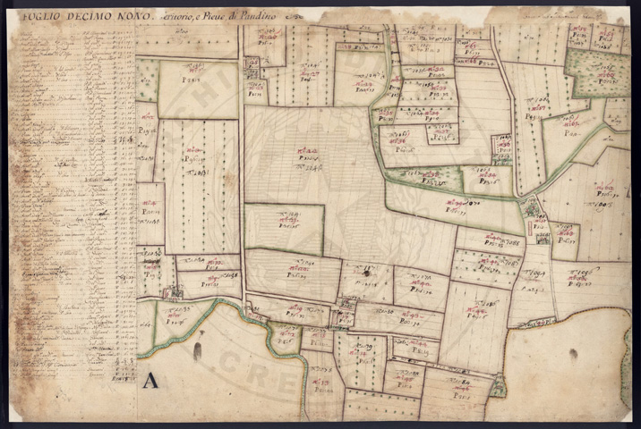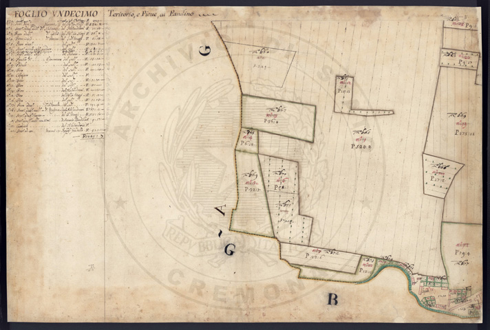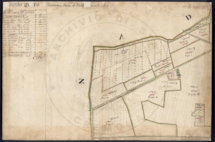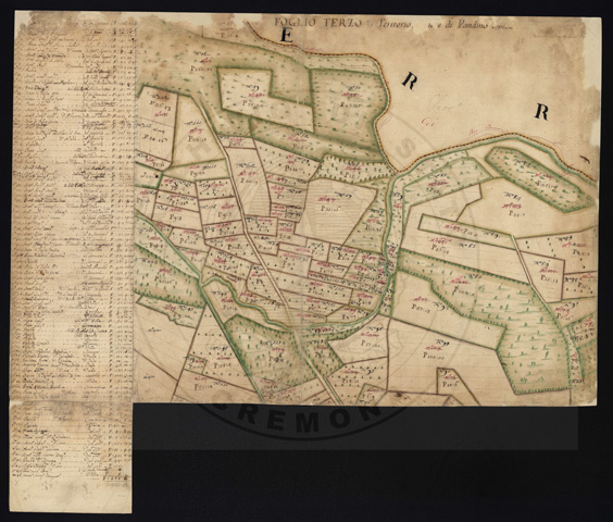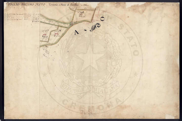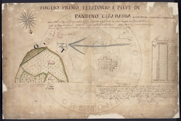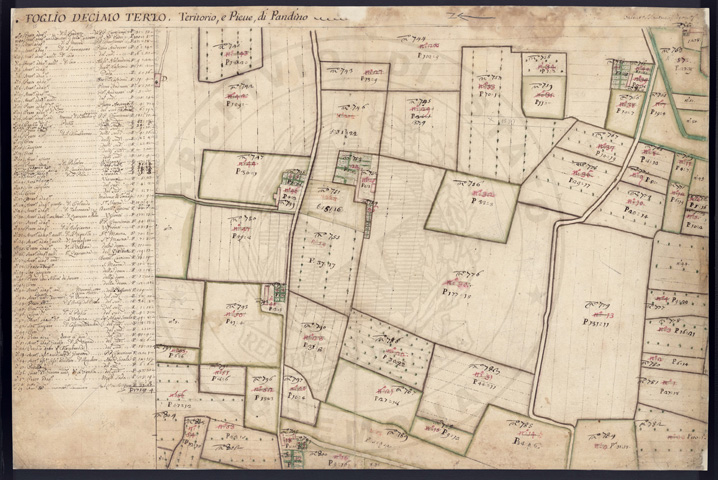 Mandamento: CremaComune: PandinoSegnatura: 237Fogli: 21Sviluppo C.U.: 1Mappetta: 1+1*Anno: 1721Scala: Pertiche di Milano ???Misuratore: Valentino MantuaniAssistenti: Michele Magno, Giovanni Andreotti, Giovanni Zucchello, Giovanni Boldi