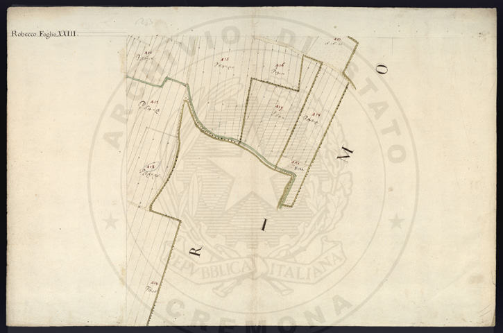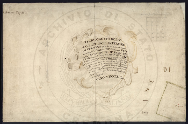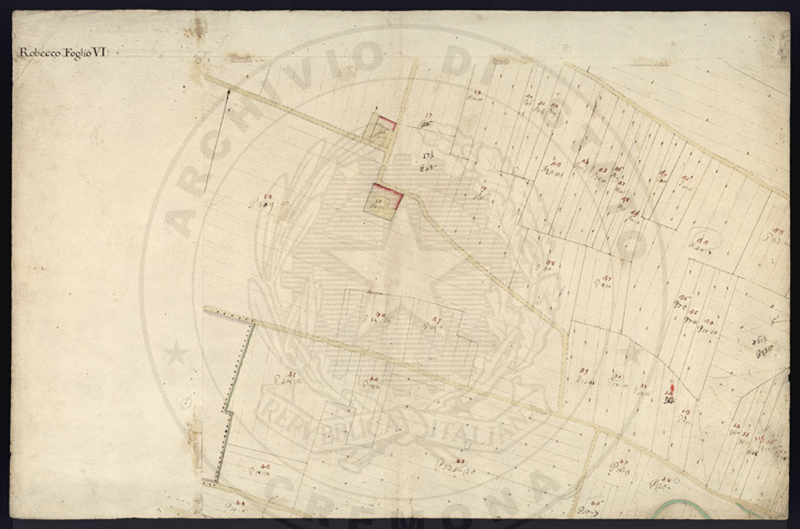 Mandamento: CremonaComune: RobeccoSegnatura: 089Fogli: 26Sviluppo C.U.: 2Mappetta: 1*Anno: 1723Scala: Trabucchi 100 milanesiMisuratore: Francesco MauroAssistenti: Giuseppe Civato, Antonio Bonali, Giacomo Viadana, Francesco BonazuoloDisegnatore: Gaspare Pozzo, Giovanni Chiesa, Giovanni della Torre