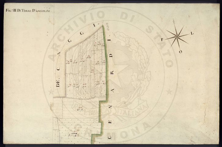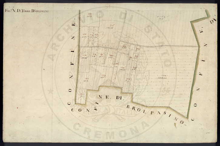 Mandamento: CremonaComune: Torre d'AngioliniSegnatura: 127Fogli: 5Sviluppo C.U.: 1Mappetta: 1Scala: Trabucchi 120 milanesiMisuratore: Giobatta TavazzaAssistenti: Giuseppe Nidolo, Giuseppe Orioli, Francesco Colli, Nicolò ZogolettoDisegnatore: Gerolamo Corradini, Eugenio Odone