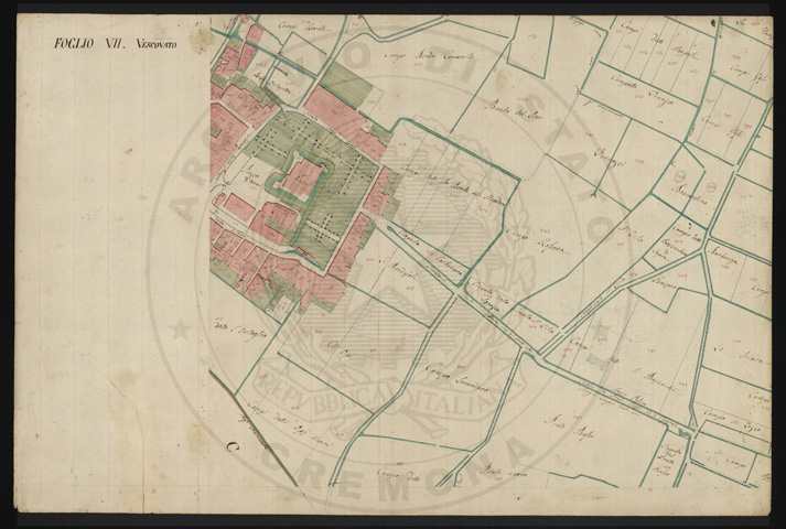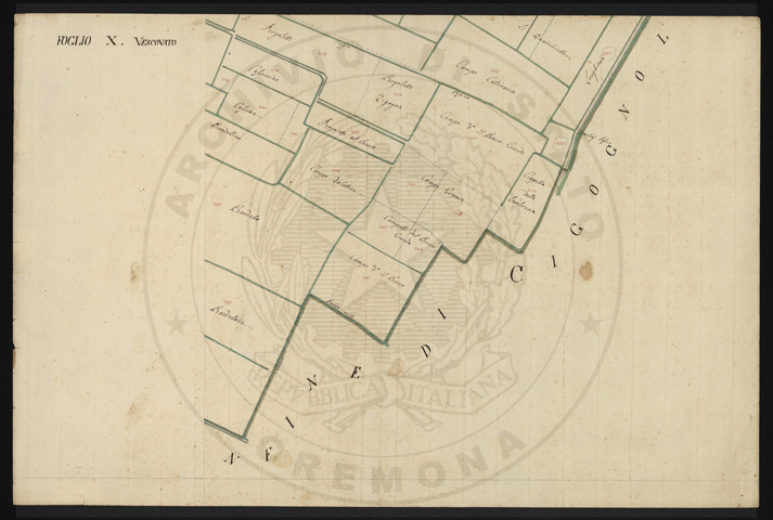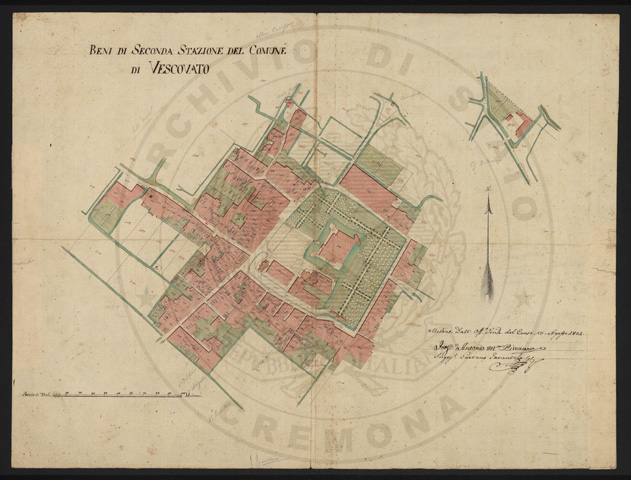 Mandamento: CremonaComune: VescovatoSegnatura: 130Fogli: 10 + 1 (q.u.)Sviluppo C.U.: 1Mappetta: 1Scala: Trabucchi 100 milanesi