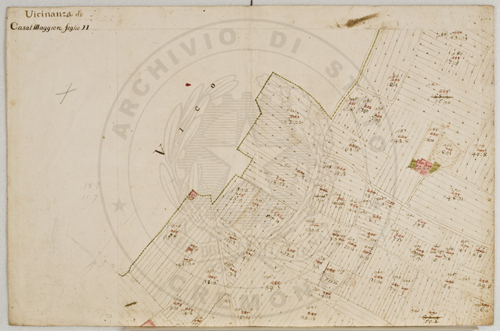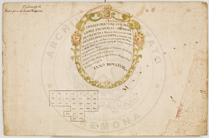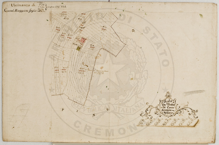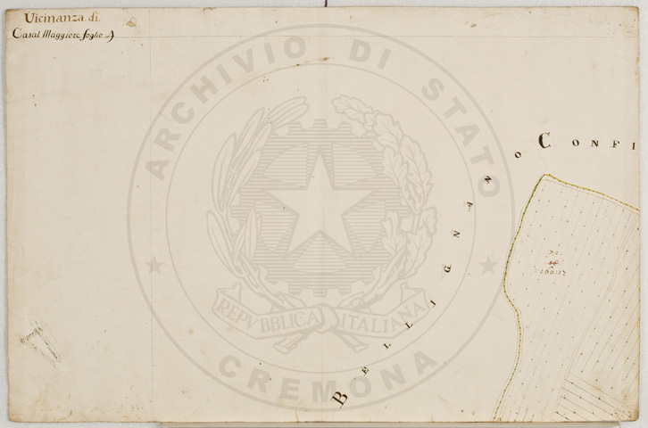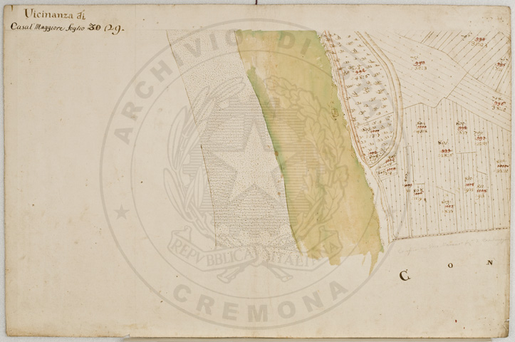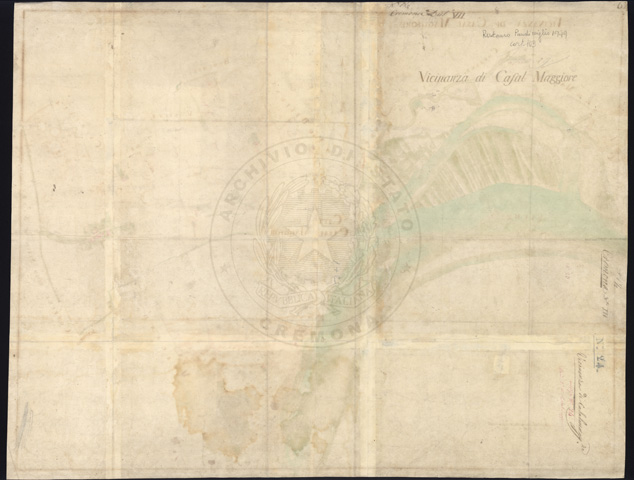 Mandamento: CasalmaggioreComune: VicinanzaSegnatura: 149Fogli: 30Sviluppo C.U.: 3Mappetta: 1*Anno: 1723Scala: Trabucchi 170 milanesiMisuratore: Gaudenzio PortigliottiAssistenti: Pietro Bellasio, Giovanni Archinti, Lodovico Orsini, Carlo BazzaniDisegnatore: Federico Maggi, Giuseppe Bovara