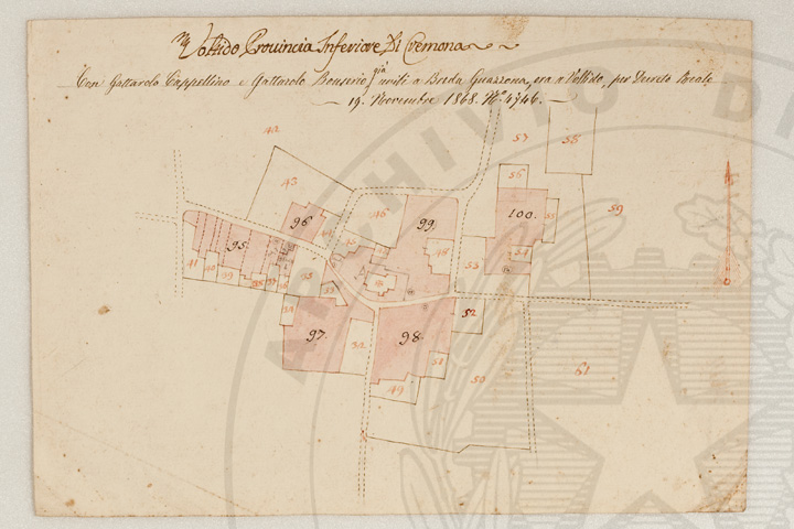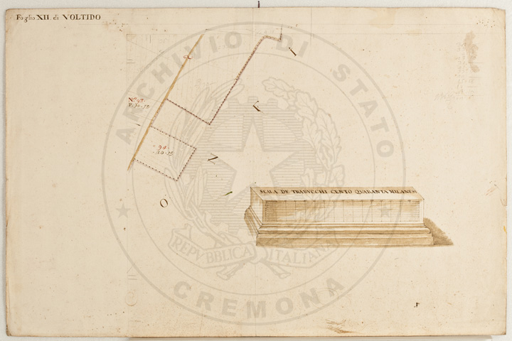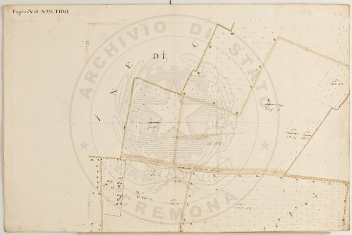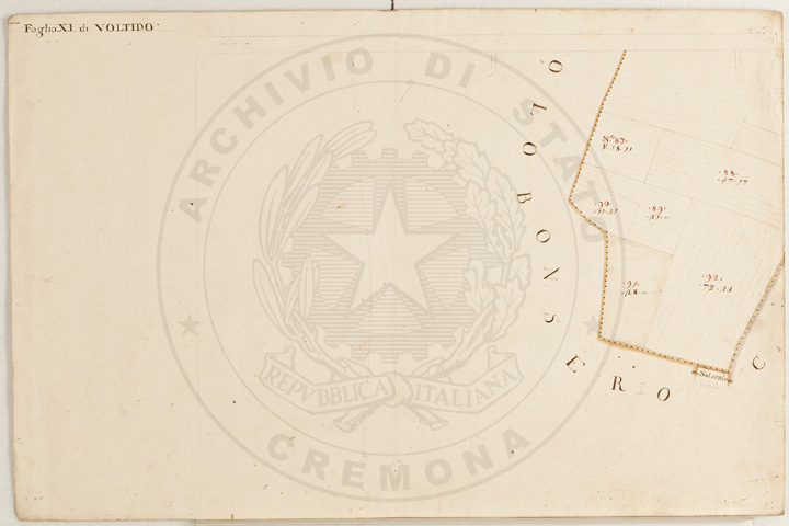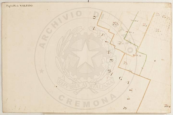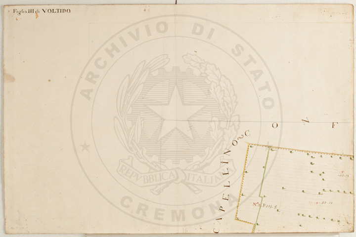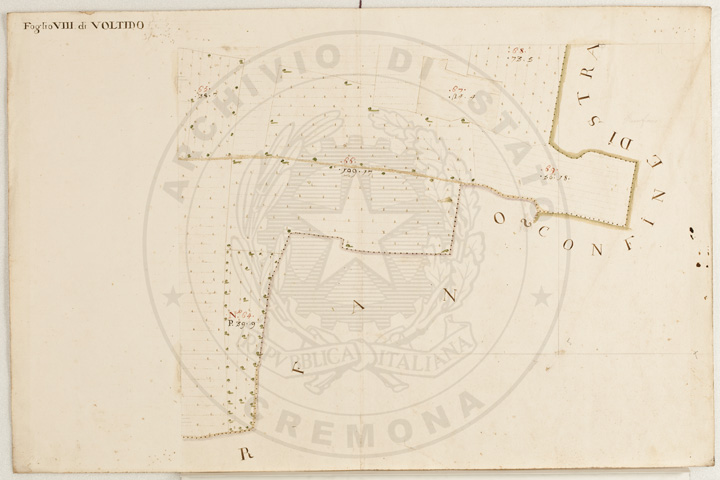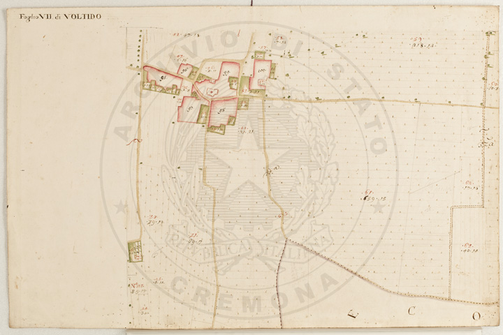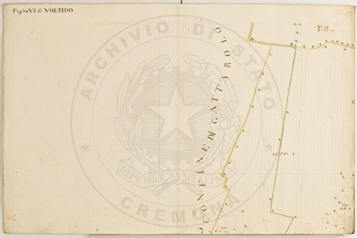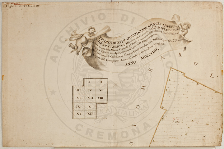 Mandamento: CasalmaggioreComune: VoltidoSegnatura: 195Fogli: 12Sviluppo C.U.: 1Mappetta: 1Anno: 1723Scala: Trabucchi 140 milanesiMisuratore: Giobatta TavazzaAssistenti: Giovanni Lottico, Bartolomeo Boschino, Stefano Coppa, Francesco SemenzaDisegnatore: Antonio Cattella, Antonio Porro